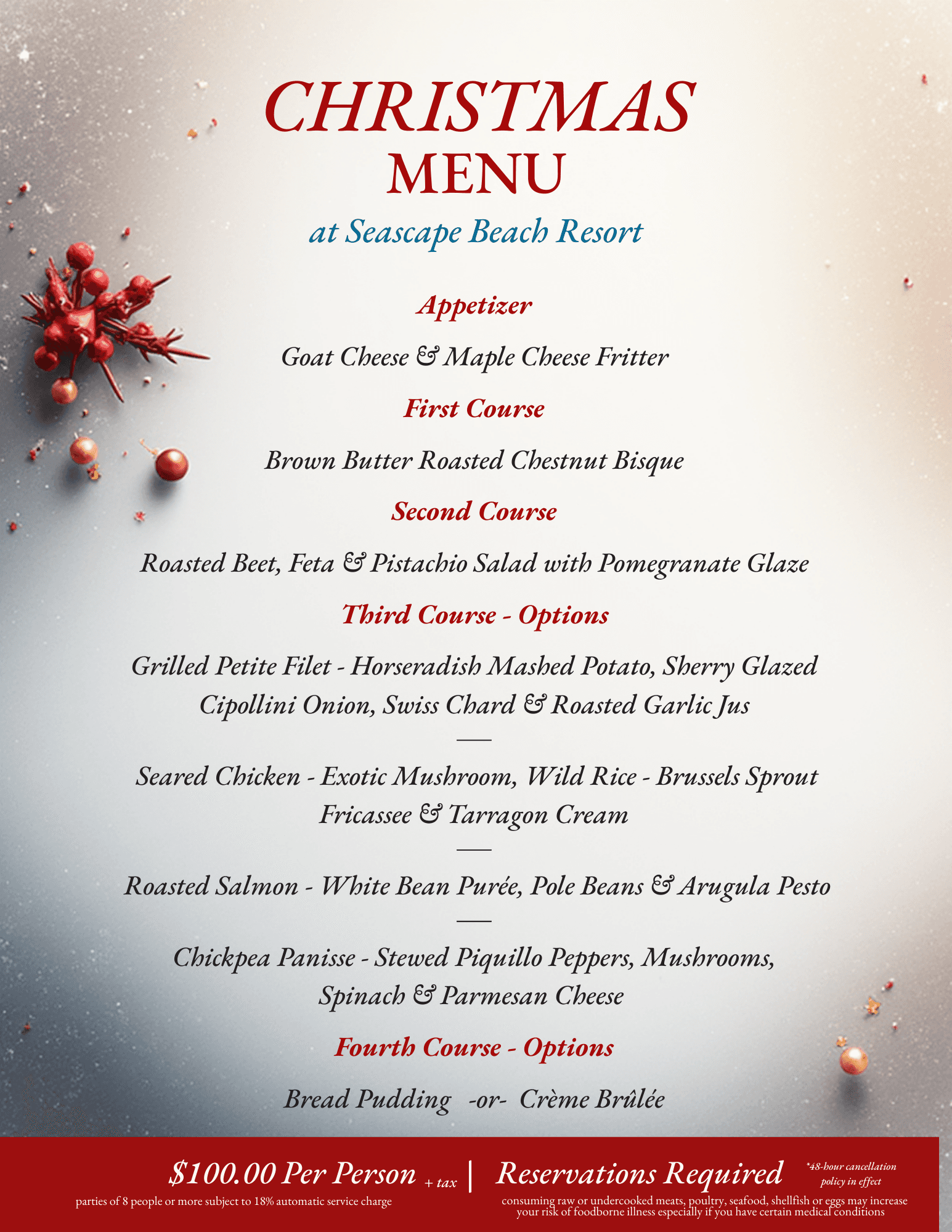 *Consuming raw or undercooked meats, poultry, seafood, shellfish, or eggs may increase your risk of foodborne illness, especially if you have certain medical conditions.